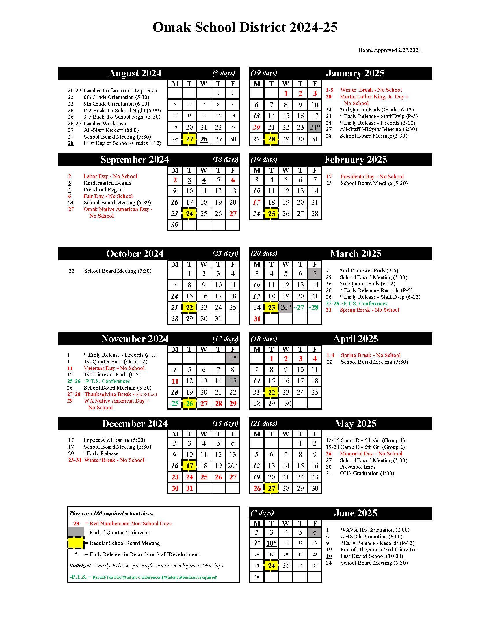 2024-2025 School Calendar